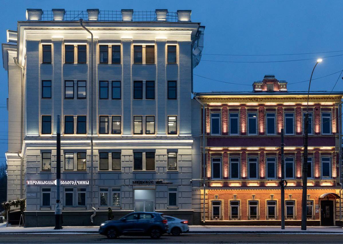 Благодаря программе преображается облик городов. В нее входит установка архитектурной подсветки — в Вологде она смонтирована на 28 зданиях, включая ансамбль художественного освещения на улице Мира.