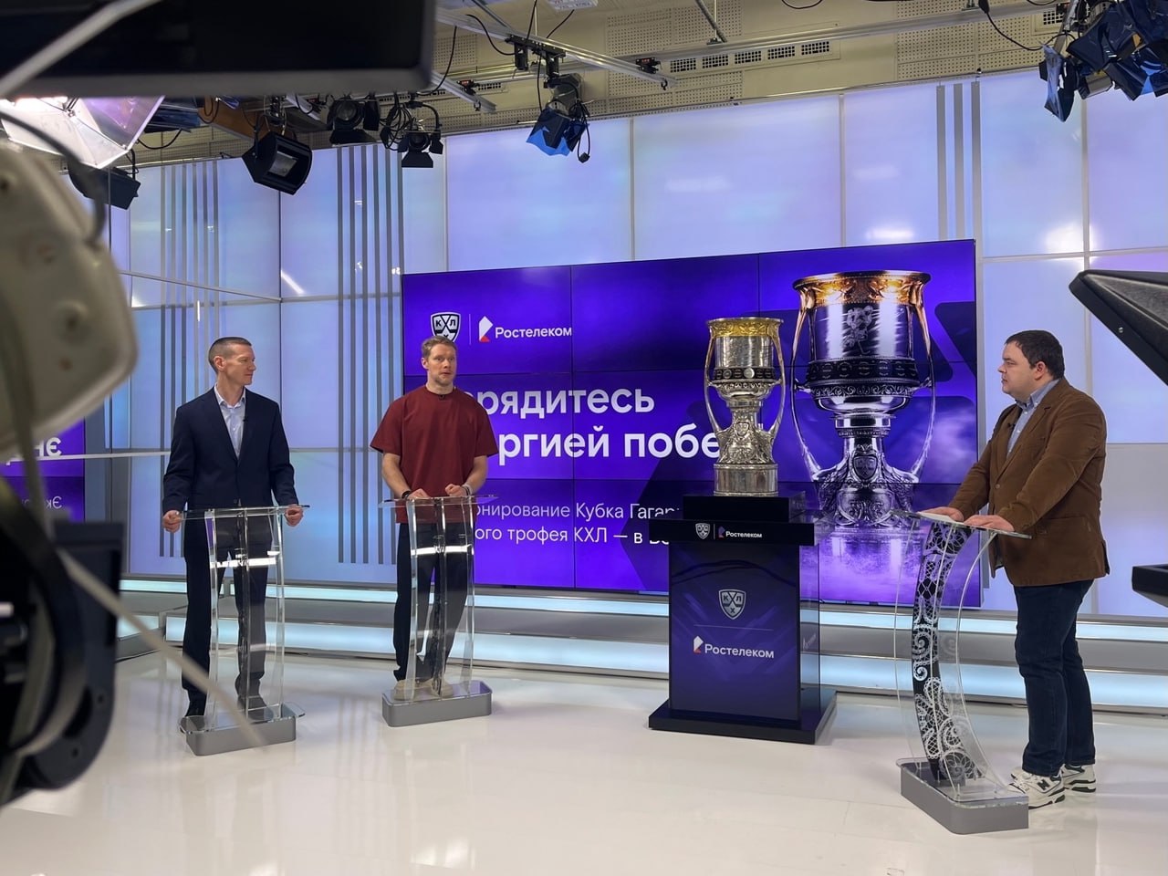 Главный трофей континентальной хоккейной лиги привезла компания Ростелеком и амбассадор проекта – хоккеист, олимпийский чемпион и двукратной обладатель Кубка Гагарина – Сергей Андронов.