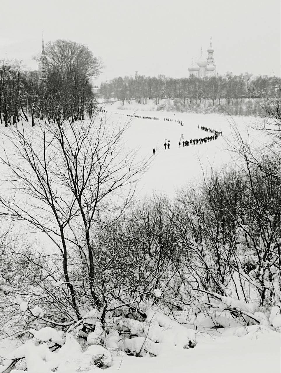 300 верующих прошли 6 километров по снегу Крестным ходом по реке Вологде