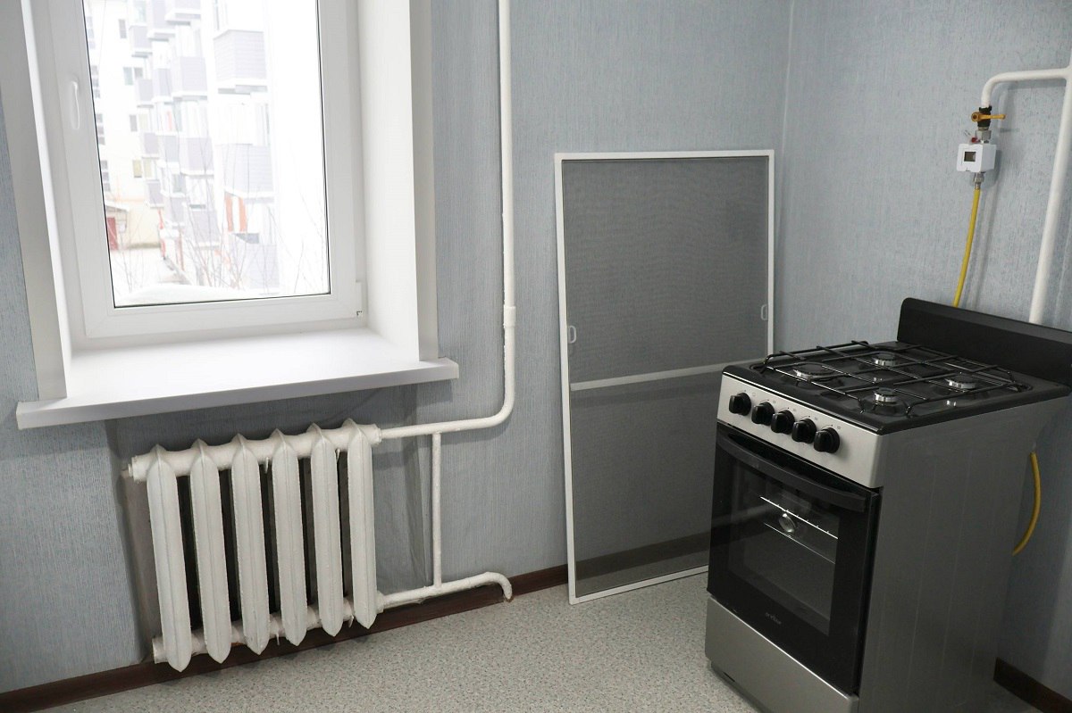 Ключи передал и. о. министра строительства Андрей Накрошаев. Военнослужащий приехал в отпуск из зоны боевых действий, поэтому документы оформили оперативно. Квартира с ремонтом, новой сантехникой и плитой полностью готова к заселению.
