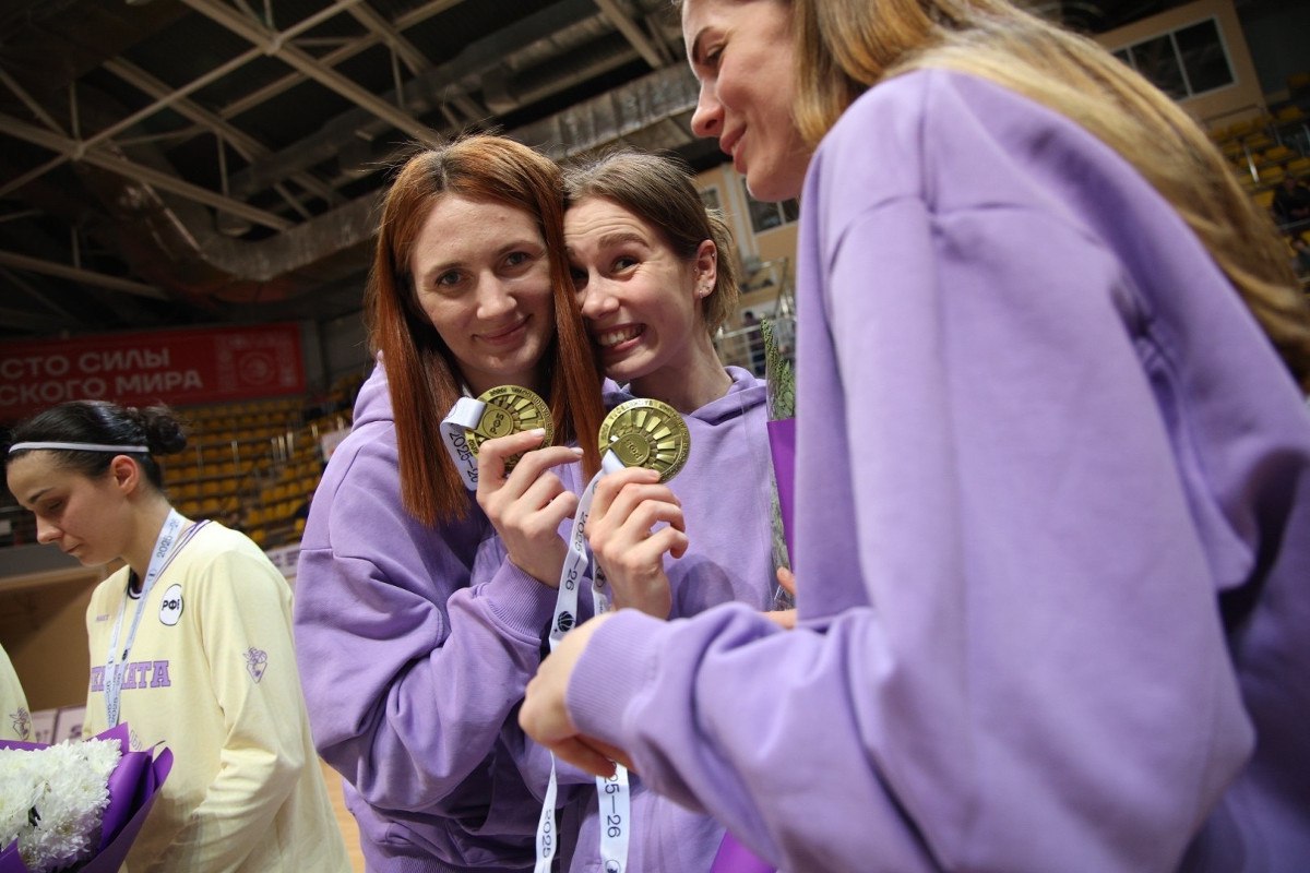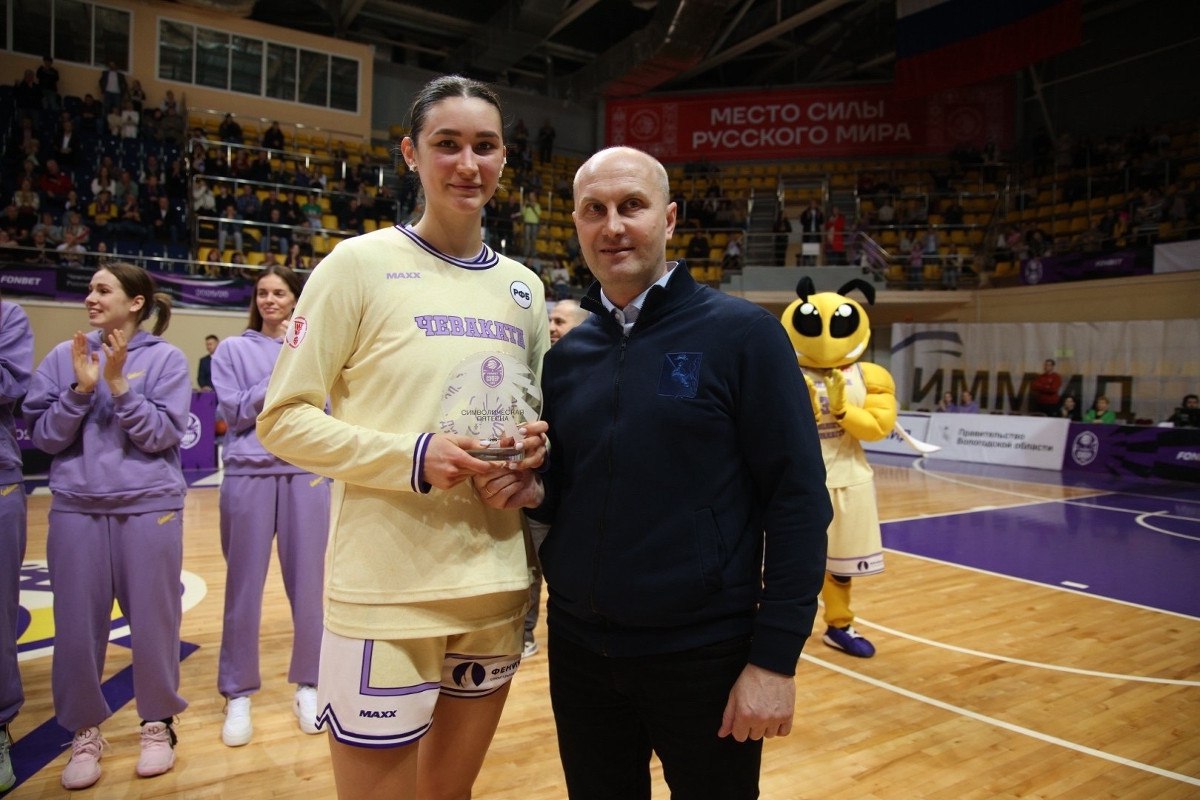 После завершения матча «Чеваката» - «Спарта энд К-2» баскетболисткам Вологды были вручены золотые медали регулярного чемпионата женской Суперлиги, а также названы фамилии трех «пчелок», отмеченных индивидуальными наградами первенства.