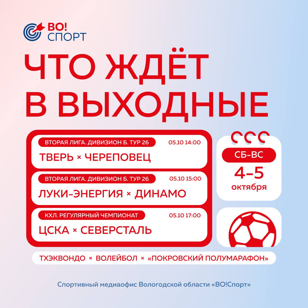 Как провести выходные спортивно? Смотрите программу спортивного медиаофиса Вологодской области.