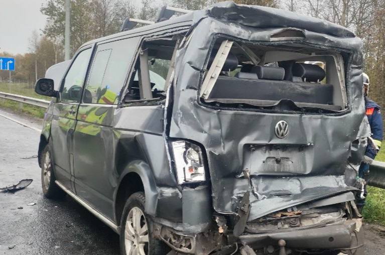 По предварительным данным, водитель грузовика «Донфенг» с полуприцепом въехал в стоявший на светофоре микроавтобус «Фольксваген Мультивен». В результате столкновения травмы получили водитель микроавтобуса мужчина 1976 года рождения и его пассажирка 1986 года рождения.