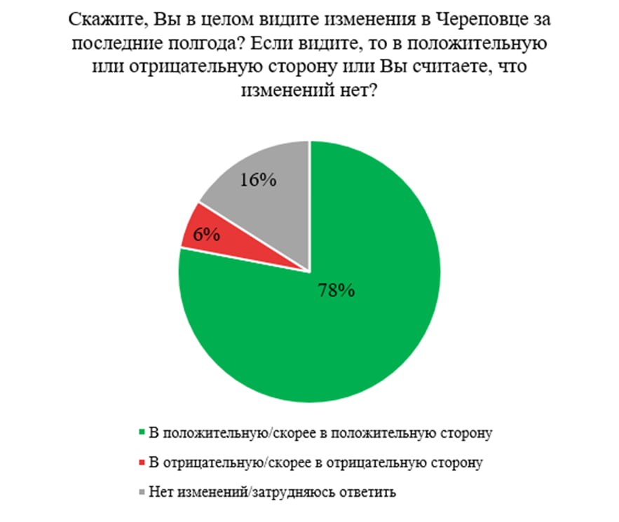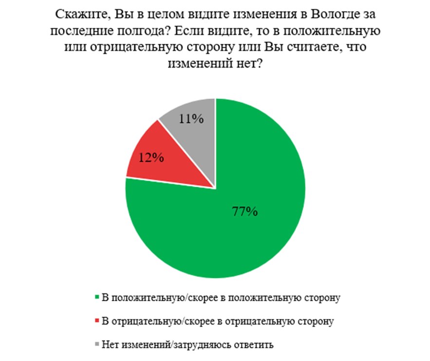 Цифры говорят сами за себя: по данным Агентства мониторинги и социологических исследований (АМСИ), подавляющее большинство жителей — 77% вологжан и 78% череповчан — видят положительные изменения в благоустройстве своих городов за последние полгода.