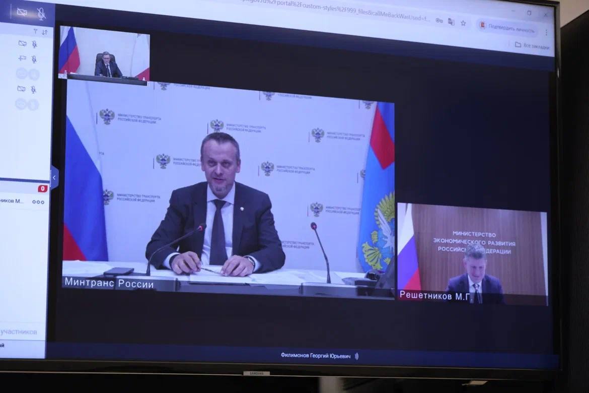 Губернатор принял участие в совещании с Министром транспорта России Андреем Сергеевичем Никитиным и Министром экономического развития России Максимом Геннадьевичем Решетниковым.
