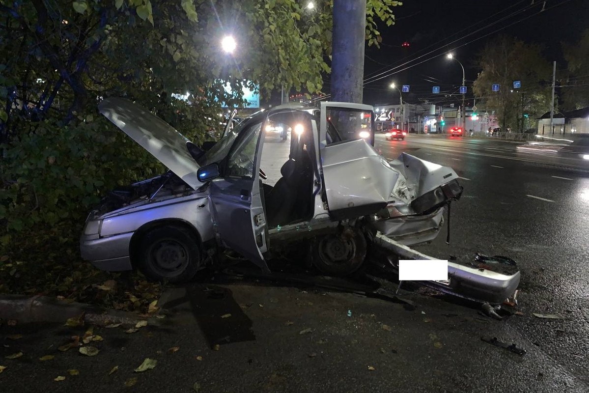 В Вологде автомобиль врезался в опору ЛЭП и вылетел на тротуар