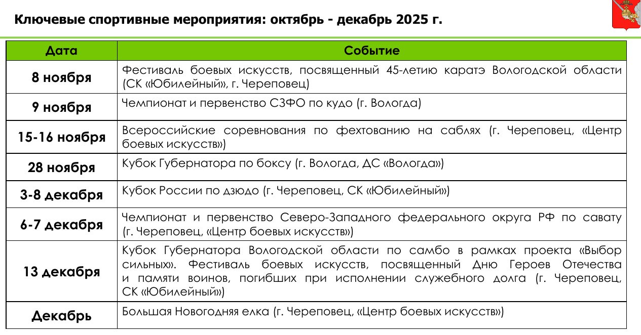 Министр спорта Александр Мурогин доложил губернатору Георгию Филимонову также об основных спортивных событиях октября-декабря 2025 года.