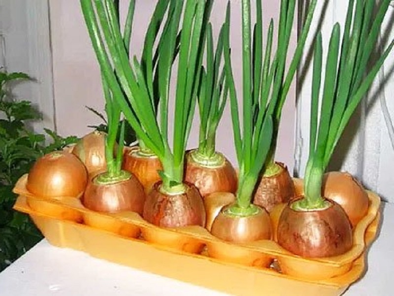 - Освещение: Разместите емкости с луком на солнечном подоконнике. Поступление света обеспечит интенсивный зеленый цвет и крепкие перья.