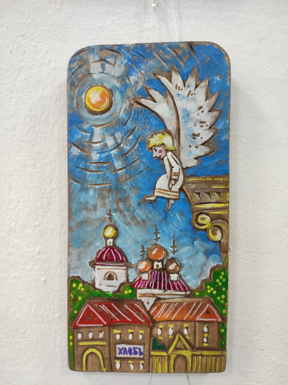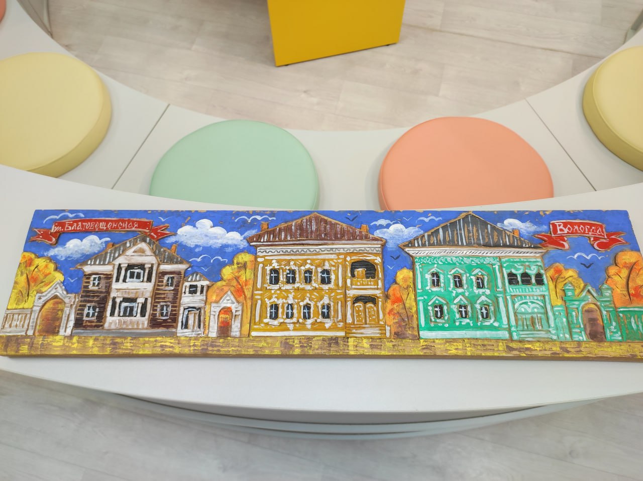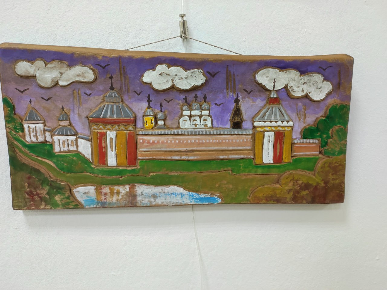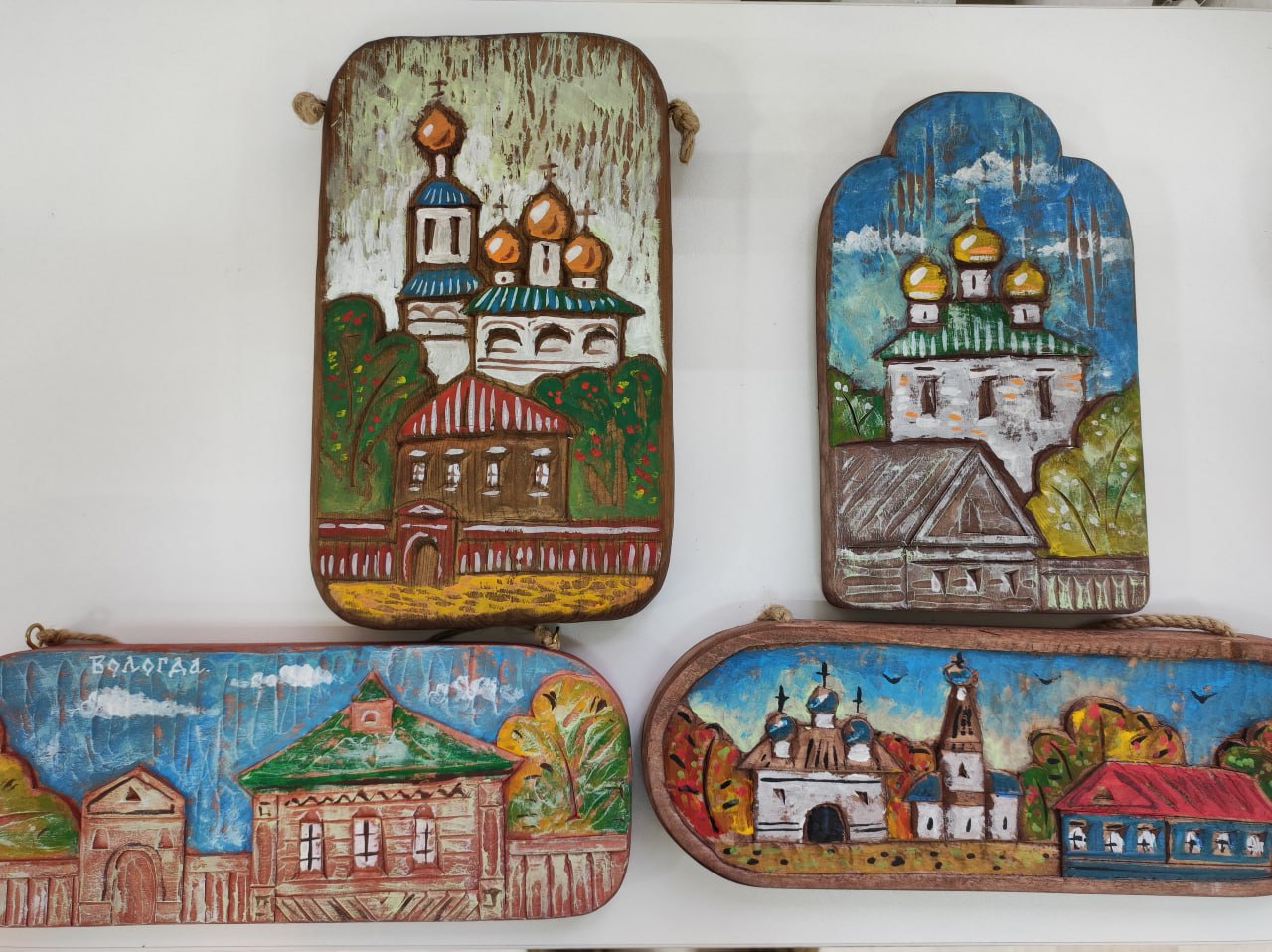 Необычная выставка открылась в Харовской центральной библиотеке. Художник Олег Малинин, член Союза русских художников и резчик по дереву Алексей Борисов создали уникальные произведения искусства. Экспонаты посвящены Вологодской области. На деревянных резных заготовках изображены виды Вологды, Кирилло-Белозерского монастыря, православных храмов, представлены авторские иконы.