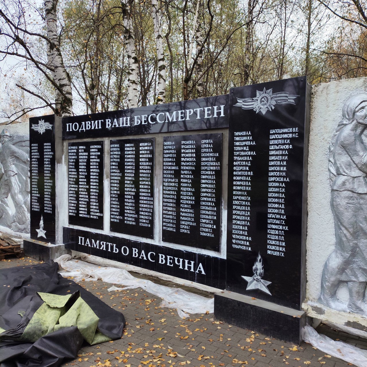 В микрорайоне ЛДК завершается монтаж памятника и благоустройство прилегающей территории. Уже выложены тротуарные дорожки, установлены фонари уличного освещения, смонтирован сам памятник, а на его задней части смонтированы гранитные плиты с именами земляков, не вернувшихся с войны. Осталось выполнить финальные штрихи: покрасить задник мемориала, установить скамейки и урны, а также подключить фонари к электросети. Подрядная организация планирует завершить все работы к началу следующей недели.
