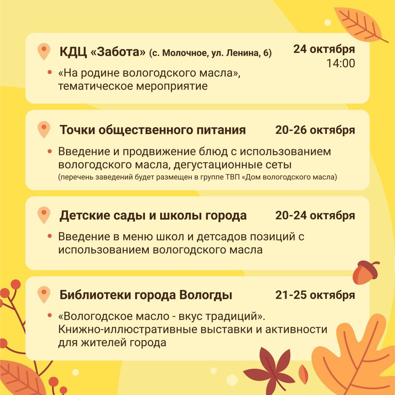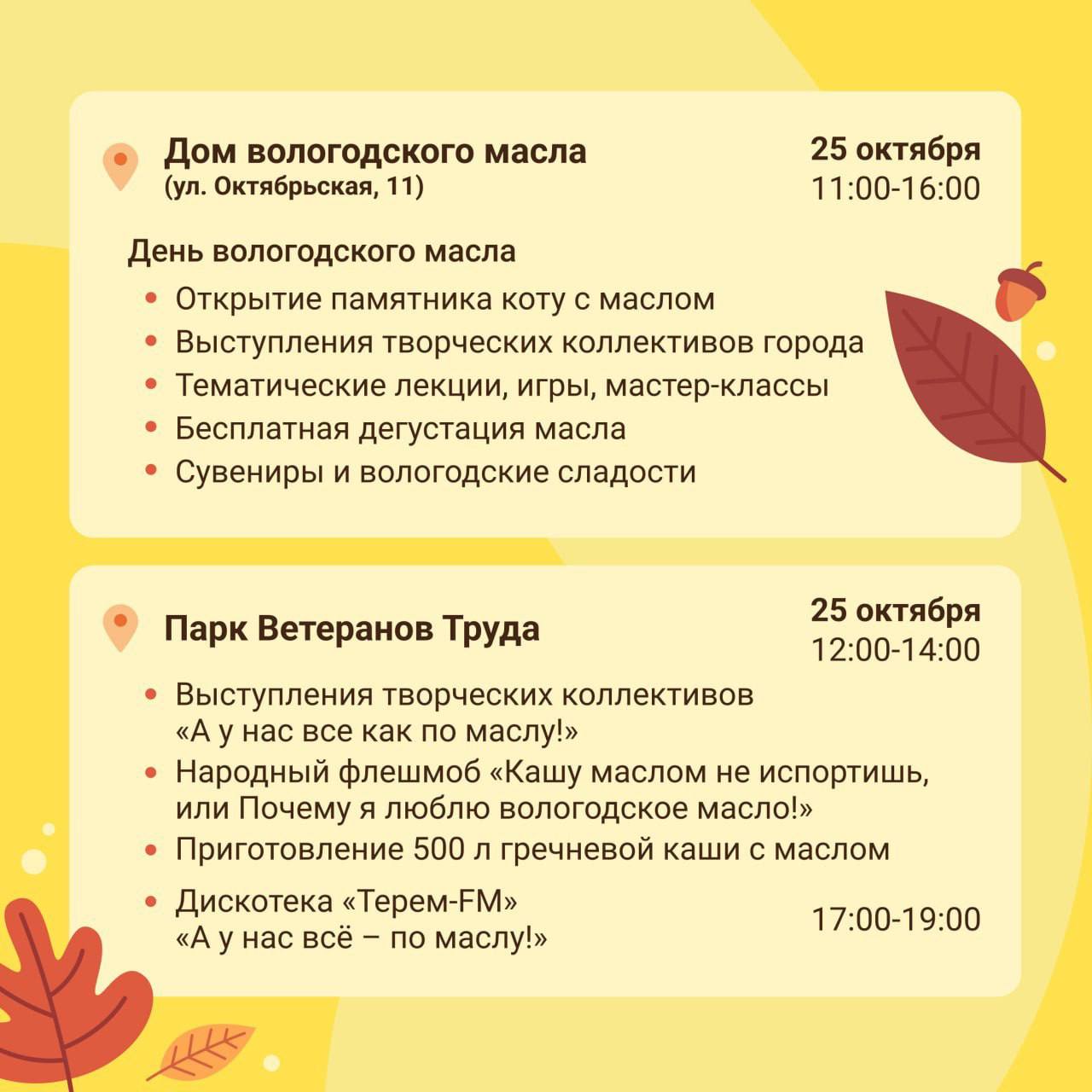 Центральным событием станет приготовление 500 литров гречневой каши с вологодским маслом в парке Ветеранов, которой угостят посетителей.