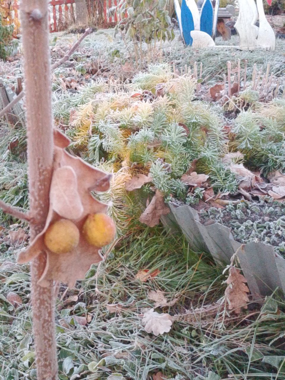 Местные жители делятся фотографиями льда, намёрзшего в вёдрах, и дачных участков, покрытых инеем… А как у вас сегодня?)