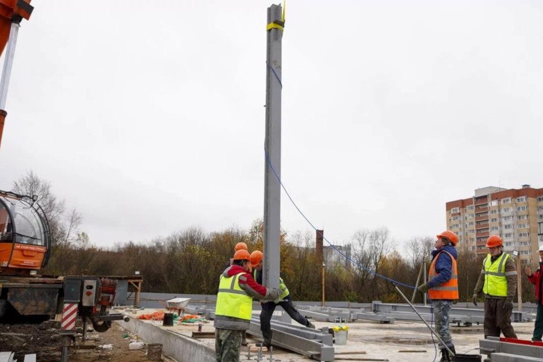 В Вологде на улице Фрязиновской начался ключевой этап строительства нового бассейна в рамках программы губернатора «Стратегия 2.0». После подготовки фундамента строители приступили к сборке модульного каркаса.