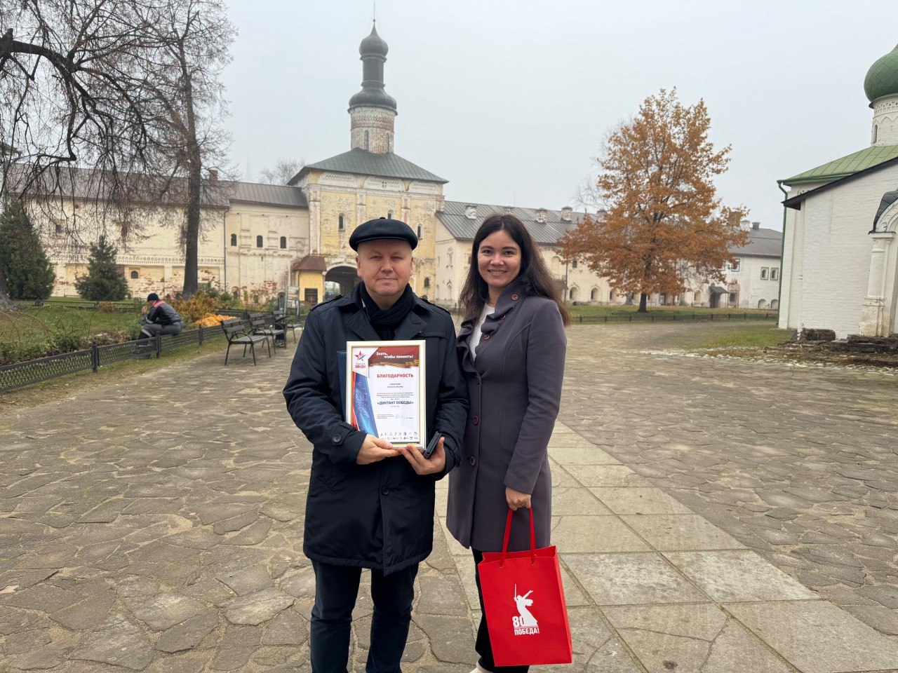 Депутат ЗСО Любовь Царева встретилась с заместителем директора учреждения культуры Алексеем Смирновым и вручила благодарственное письмо за подготовку и проведение замечательного цикла познавательных мероприятий, приуроченных к старту Всероссийской патриотической акции «Диктант Победы».
