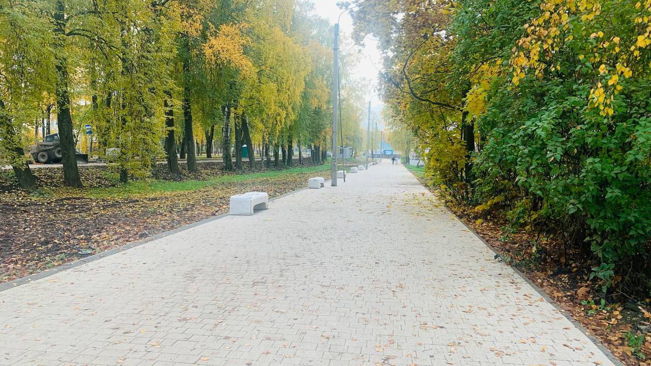 Специалисты заканчивают укладывать плитку на тротуарах и велодорожках. Монтируют электроснабжение и декоративные элементы. Также создают дорожки из брусчатки. Устанавливают видеонаблюдение, малые архитектурные формы и информационные стенды.