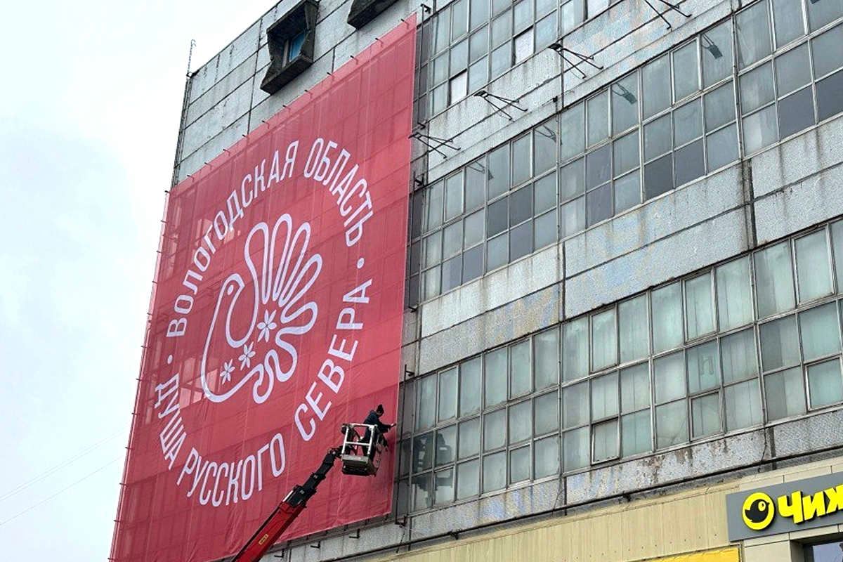 В Вологде начали закрывать фальшфасадом здание бывшего завода «Луч»