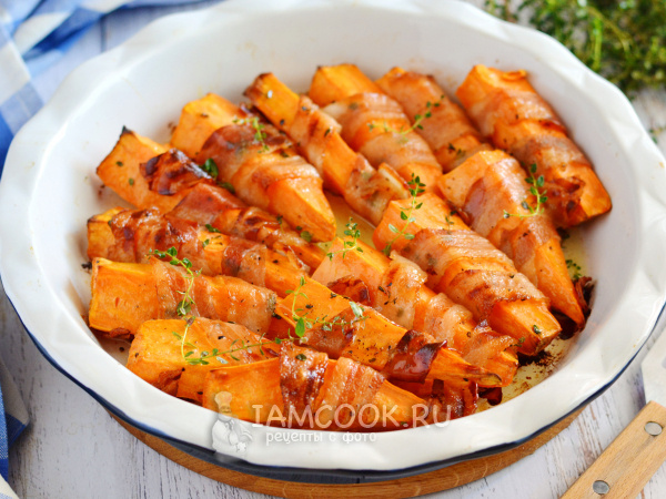 - Батат в беконе в духовке: Это блюдо станет настоящим хитом для любителей сладковатого вкуса батата, который отлично сочетается с хрустящей текстурой бекона.