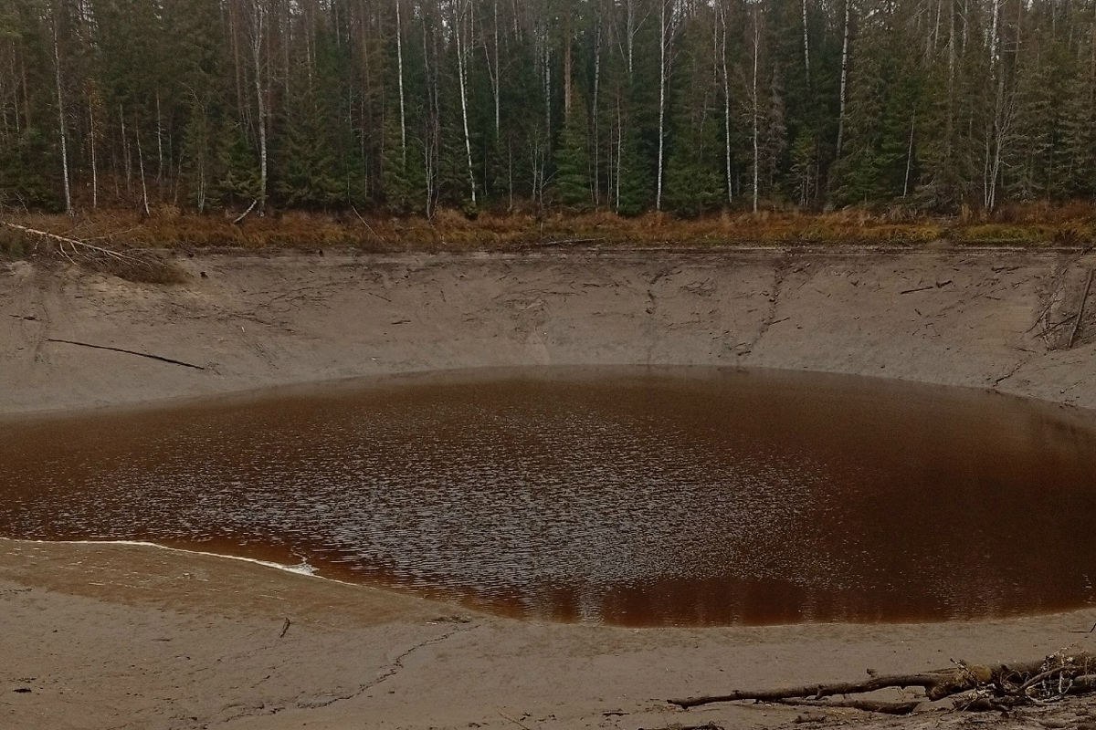 В Вытегорском округе вновь исчезло озеро Шимозеро, известное как Черная Яма! Вода ушла в карстовую воронку, и на дне остался лишь небольшой ручей.