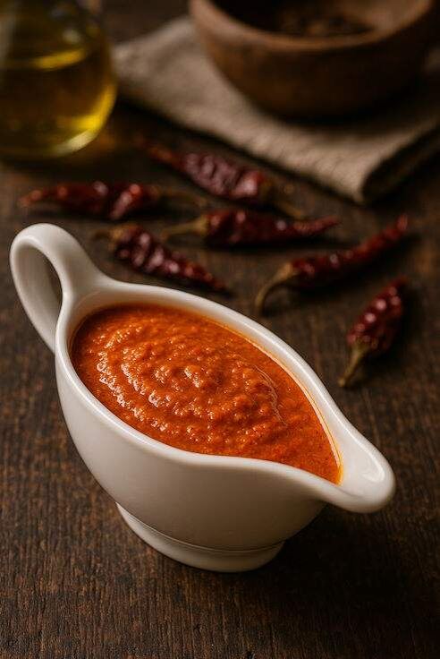 Создание этого острого соуса — дело несложное, и не займет больше 25 минут. Начните с того, чтобы замочить сушёные перчики в кипятке в течение 15 минут. После этого рекомендуется слить воду и обсушить перцы бумажными полотенцами. Для того чтобы соус не оказался слишком грубым, стоит удалить семена. Затем все ингредиенты помещаются в блендер, и смесь взбивается до получения однородной консистенции. В итоге получится пикантный соус, который станет отличным дополнением к самым различным блюдам.