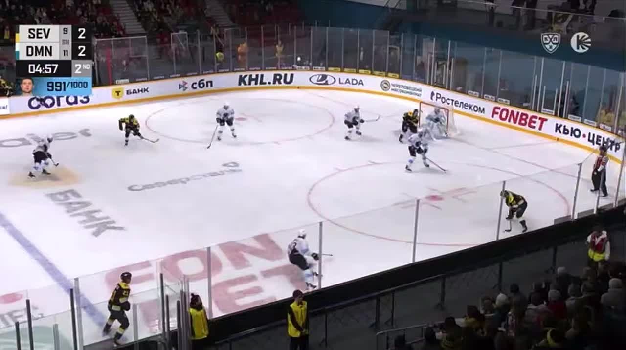 Счёт в матче открыли череповчане, но вскоре гости из Минска сравняли счет. Во второй двадцатиминутке Адам Лишка увеличил преимущество череповчан, забив два гола. В воротах желто-черных шайба побывала лишь один раз.