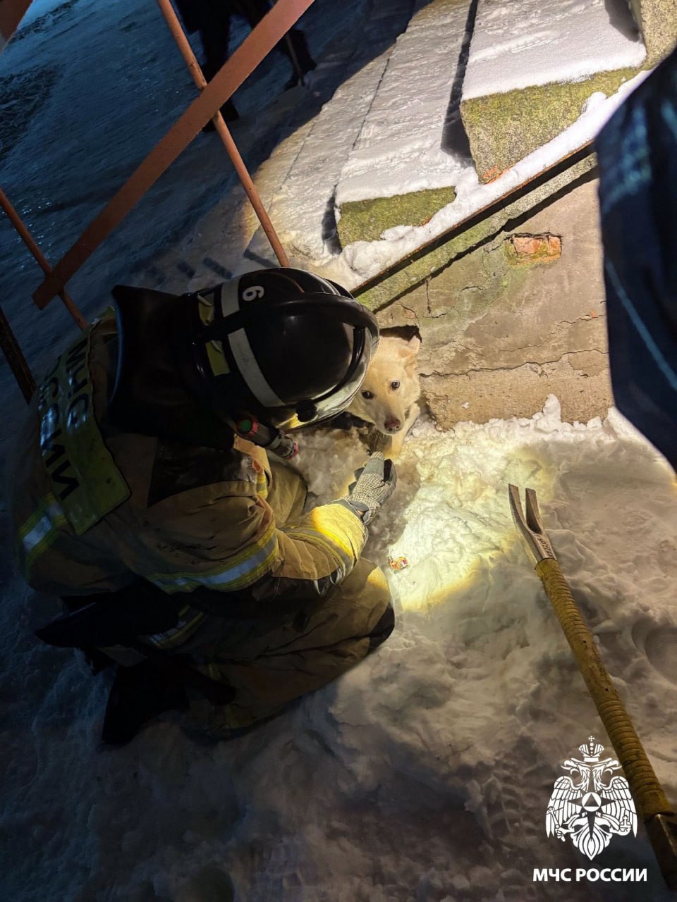 Вологодские спасатели вызволили застрявшую в подвале собаку