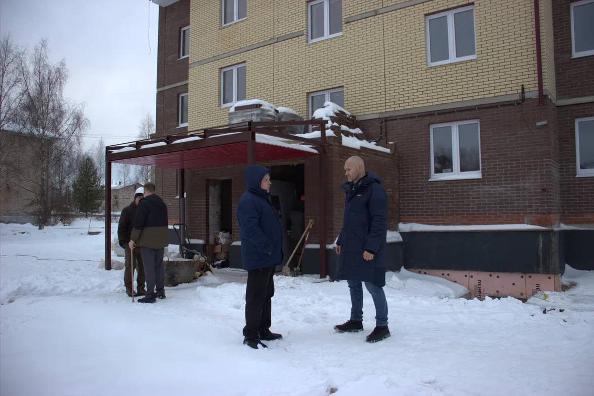 Посетили еще один строящийся дом для детей-сирот. Работы идут по графику: строительно-монтажные этапы планируем завершить в этом году, а ввести дом в эксплуатацию — в начале следующего. При отделке применяются надежные строительные материалы. Контроль качества также осуществляет «Служба единого заказчика». Ожидаем результат не хуже, чем в Тарноге.