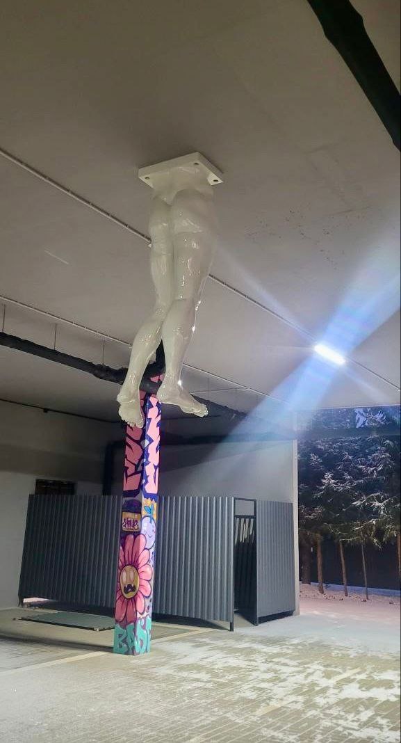 «Мы делали коллаборацию с современным искусством. Когда была в Париже Олимпиада, там скульптор соединил Венеру Милосскую и добавил ракетки. Мы тоже поиграли на эти темы. На детской площадке у нас – одна половина Давида (она выполнена в виде скалодрома), а под площадкой – паркинг, и мы ноги к потолку приставили. И пошёл шум. Но у нас большая часть покупателей говорит, что всё нормально, а несколько человек сказали: "Вот я паркуюсь – и каждый раз, что ли, проезжаю?" У нас уже самодеятельность: один товарищ купил простынь и по-древнегречески завязал ему всё это хозяйство. Я попросил, чтобы сняли.