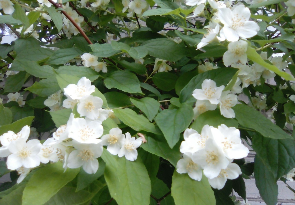 - Чубушник – садовый жасмин, цветы которого напоминают белоснежные миниатюрные розы.