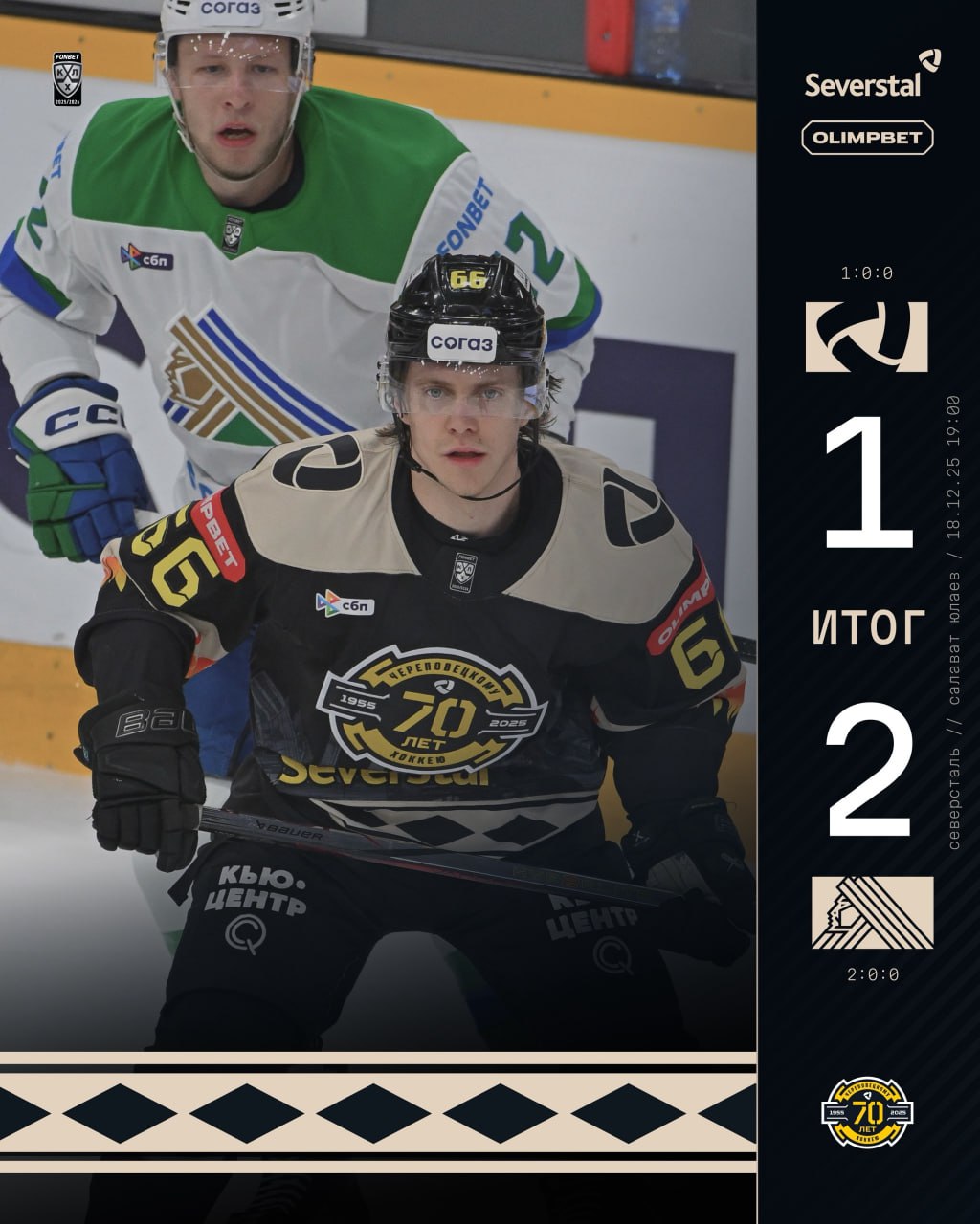Череповецкая "Северсталь" уступила дома уфимскому "Салават Юлаеву" со счётом 1:2. Единственный гол в составе "сталеваров" забил Данил Веряев.
