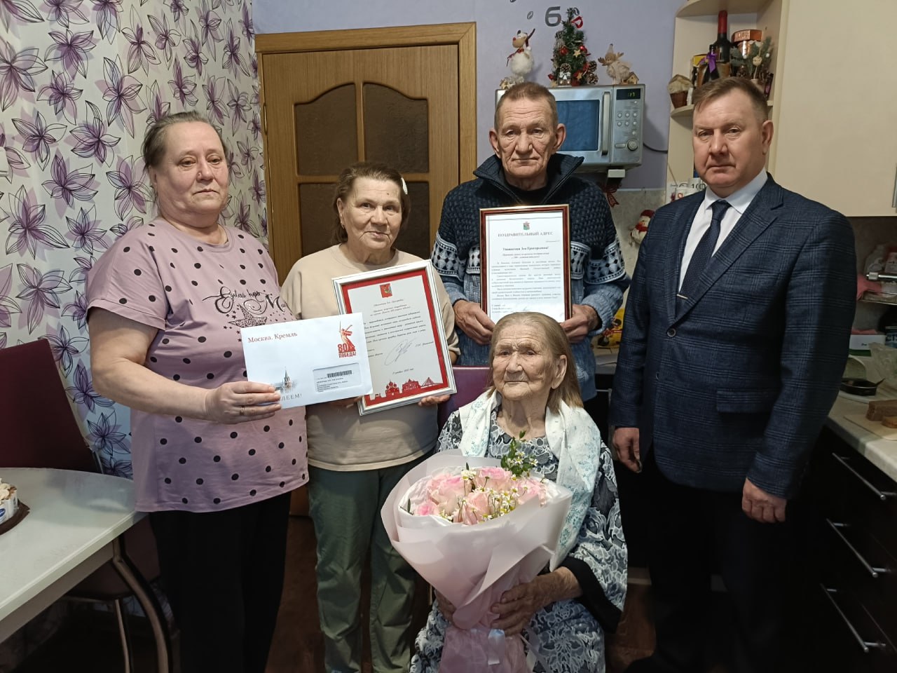 С вековым юбилеем вологжанку лично поздравил глава Вологодского округа Вячеслав Панов. Он вручил Зое Григорьевне поздравление от Президента Владимира Путина и губернатора Георгия Филимонова.