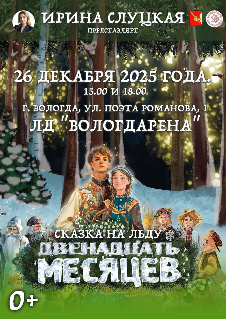 Вологжане и гости города увидят ледовую сказку Ирины Слуцкой «Двенадцать месяцев» 26 декабря (0+).