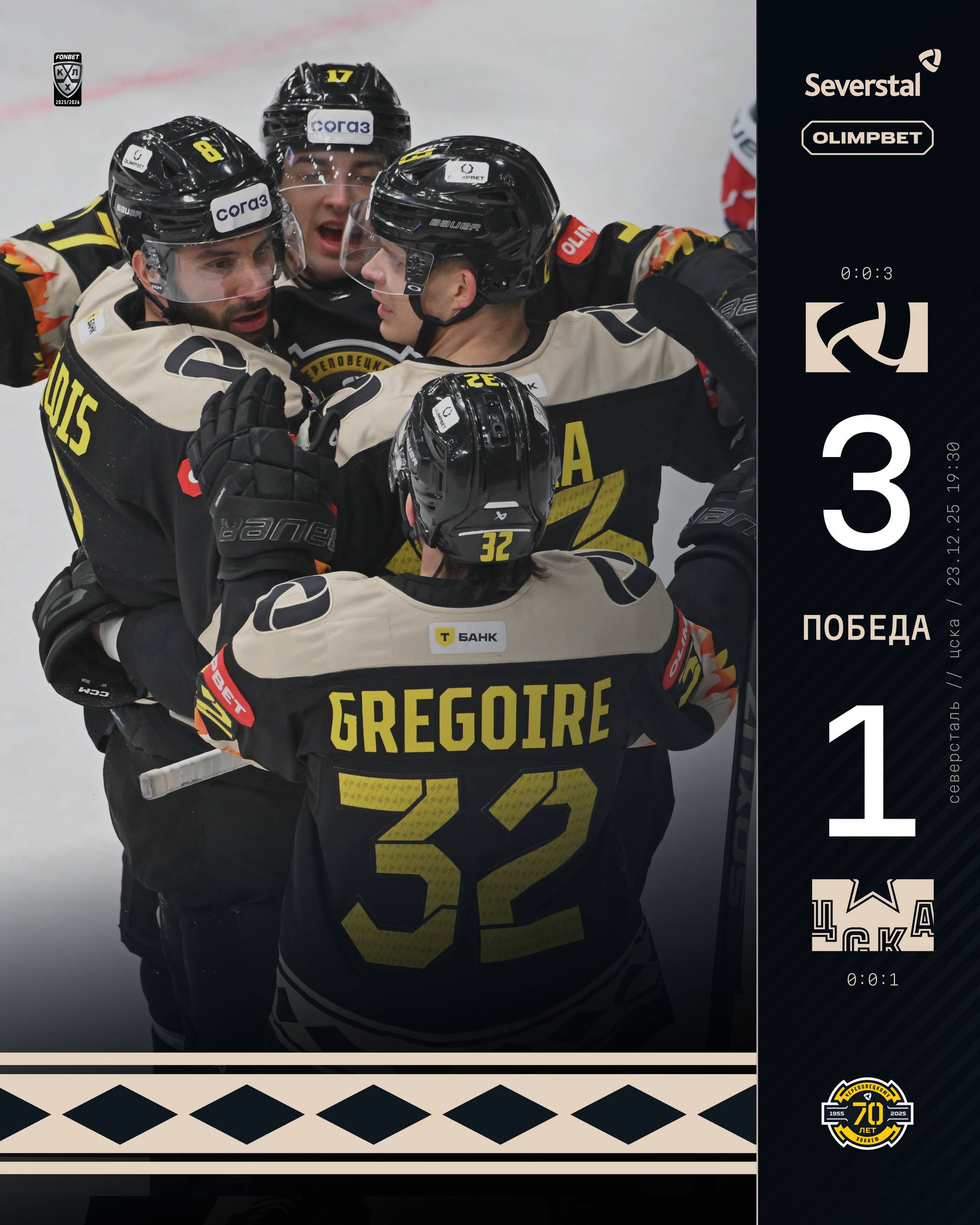 Череповецкая «Северсталь» на домашнем льду одержала красивую победу над хоккеистами столичного ЦСКА со счётом 3:1