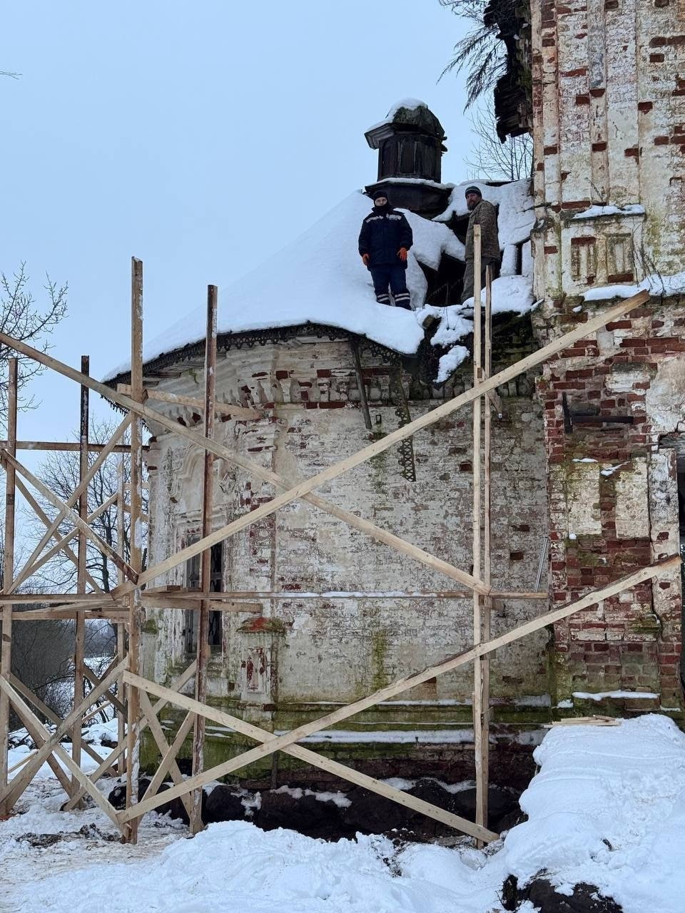 В работах по восстановлению кровли церкви помогают специалисты фонда «Наследие русского Севера». Обустройство крыши позволит законсервировать здание храма, что убережет его от дальнейшего разрушения.