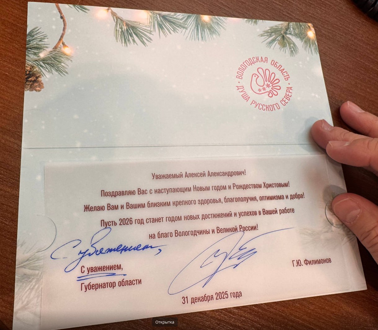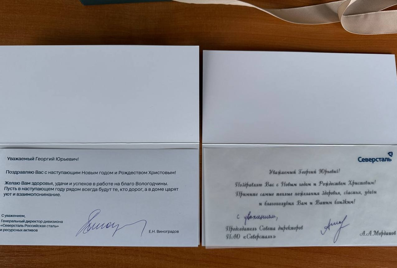 Со стороны предприятия председатель совета директоров Алексей Мордашов и генеральный директор Евгений Виноградов направили главе региона поздравительные открытки и подарочный набор с чаем и кондитерскими изделиями. В ответ губернатор преподнёс промышленникам сувенирный сундучок с продукцией вологодских производителей, сообщает тг канал Русский Сервер.