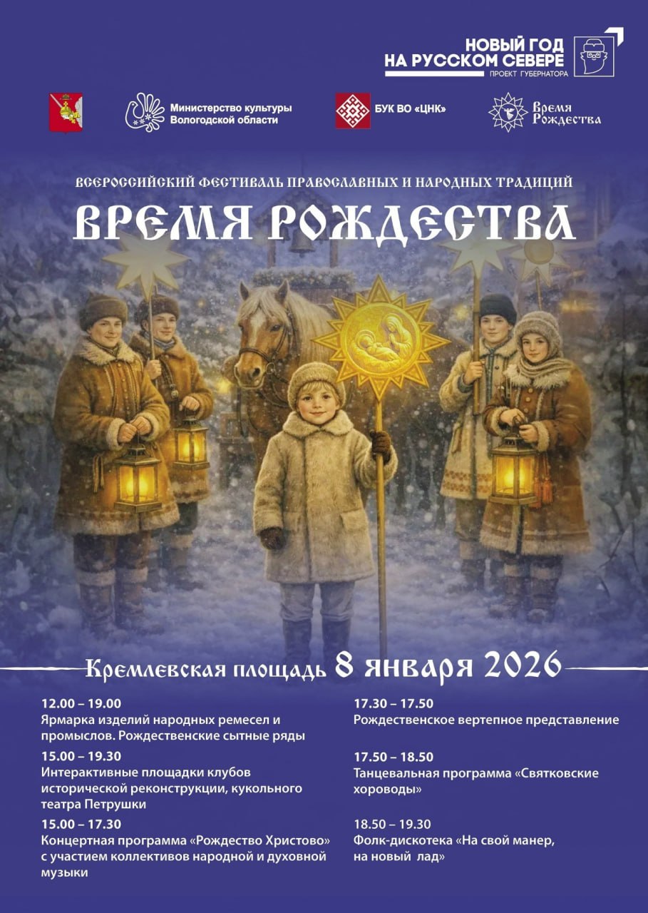 В гуляниях примут участие более 40 коллективов из регионов России и Вологодской области. Гостей ждут концерты, театрализованное вертепное представление, танцевальные и игровые программы.