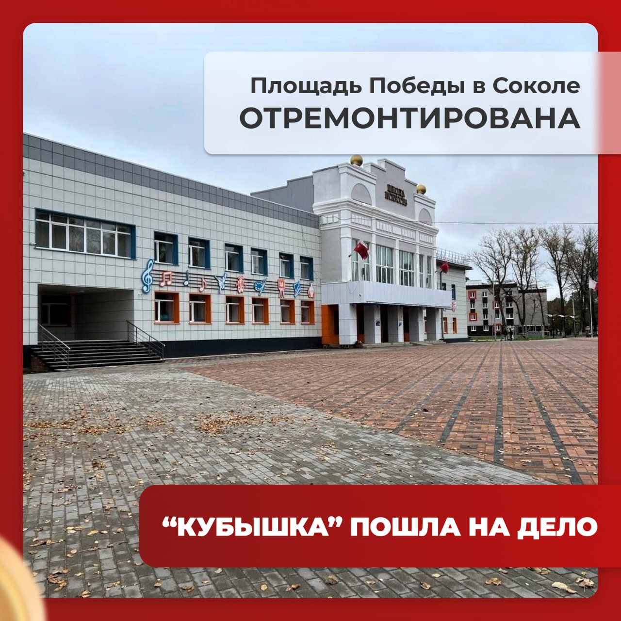 В этом году в Соколе полностью преобразилась площадь Победы, и у Детской школы искусств появилось новое, красивое и современное, пространство. Здесь серый асфальт заменили плитой в цветах символа нашей победы - Георгиевской ленты. И теперь это яркое напоминание о самом главном.