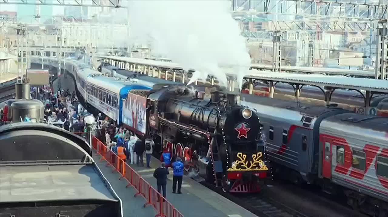 Поезд Деда Мороза завершил юбилейное путешествие по России. В этом году новогодний волшебник и его команда посетили 70 городов и преодолели более 20 тыс. км. Участниками праздничных мероприятий на вокзалах стали почти 450 тысяч человек.