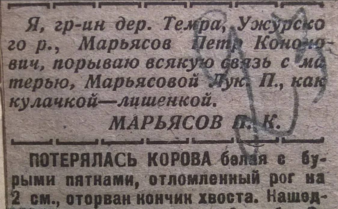 Советская власть придумала даже систему справок об отречении от семьи. Такие справки выдавались в сельсоветах или райисполкомах.
