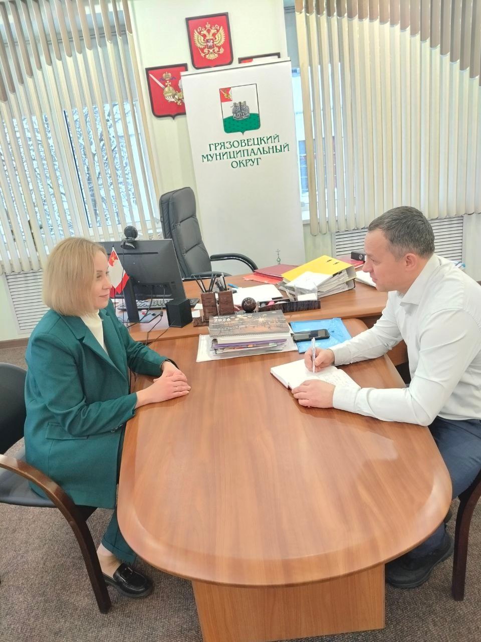 Алексей Маслов встретился с главой Грязовецкого округа, чтобы обсудить итоги уборки снега: расчистку дорог, тротуаров и общественных зон.