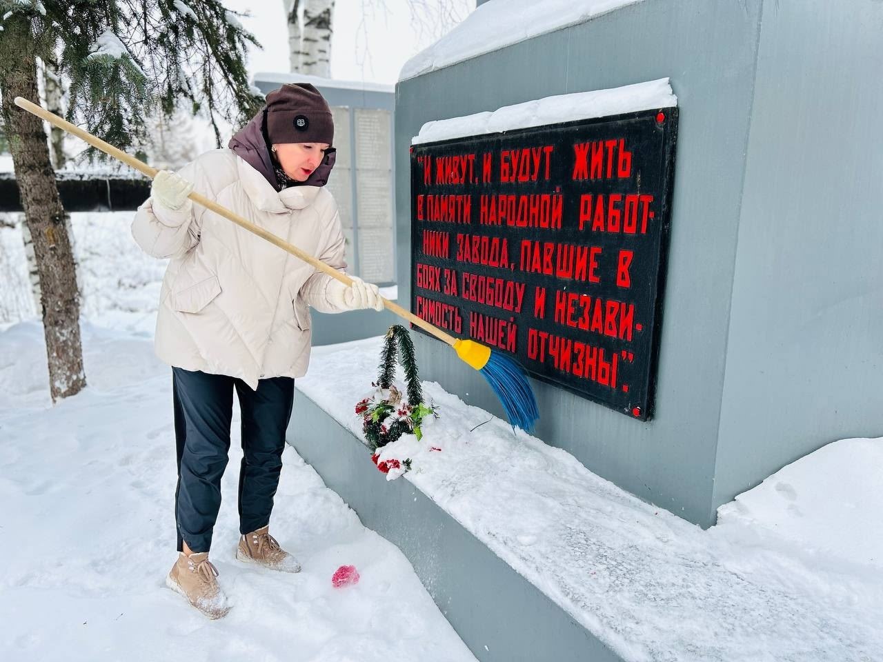 Наталья Долгина вместе с воспитанниками Великоустюгского центра помощи детям, участниками молодёжного движения «Ювента - Движение первых» приняла участие в уборке территории у памятника работникам Судостроительно - судоремонтного завода, погибшим в годы Великой Отечественной войны.