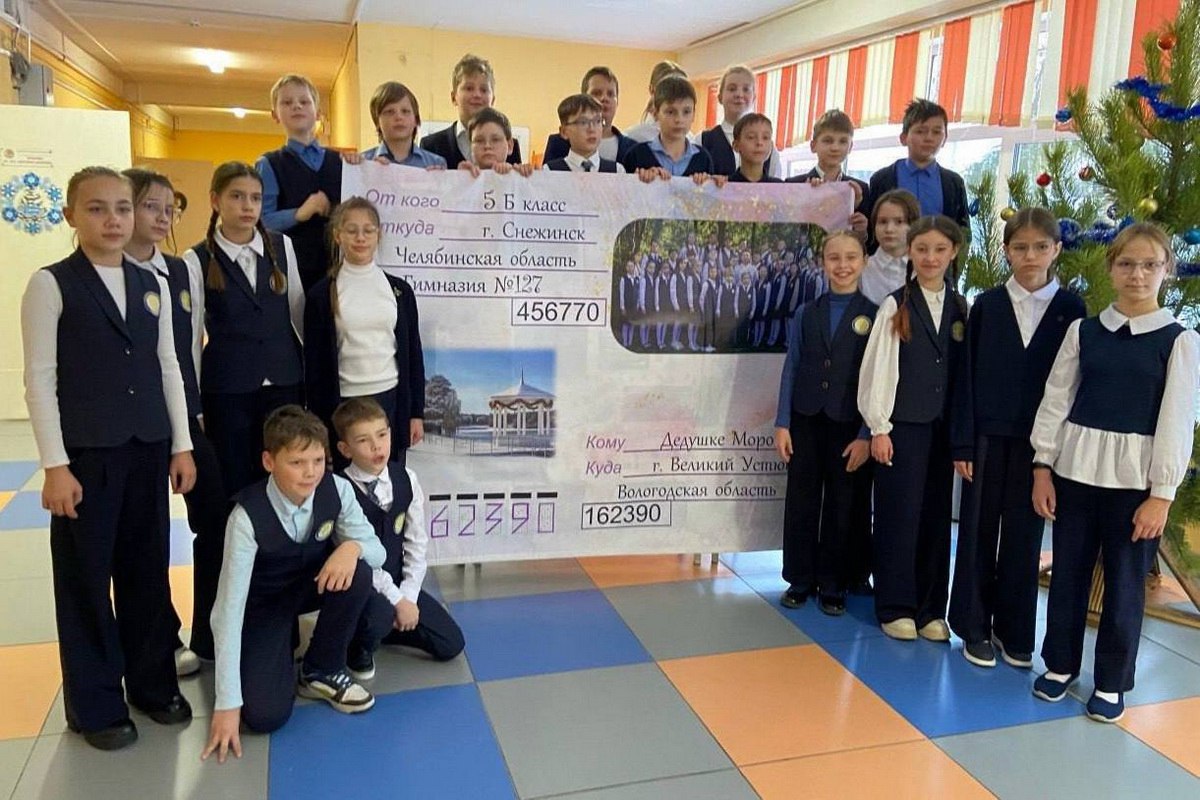 Поводом стало необычное письмо, которое получил зимний волшебник. Ученики 5 «Б» класса гимназии № 127 города Снежинска (Челябинская область) отправили ему послание гигантского размера — 1,5 на 2 метра.