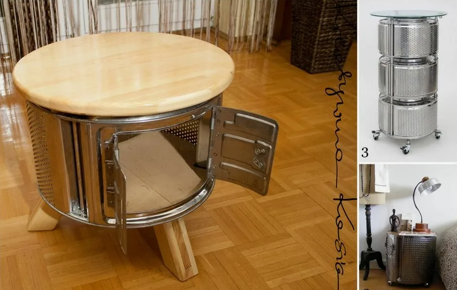Барабан старой стиралки — это настоящий кладезь идей для домашнего DIY. Будучи выполненным из нержавеющей стали, он отлично сопротивляется коррозии благодаря своей перфорированной поверхности. Это открывает удивительные возможности для творчества.