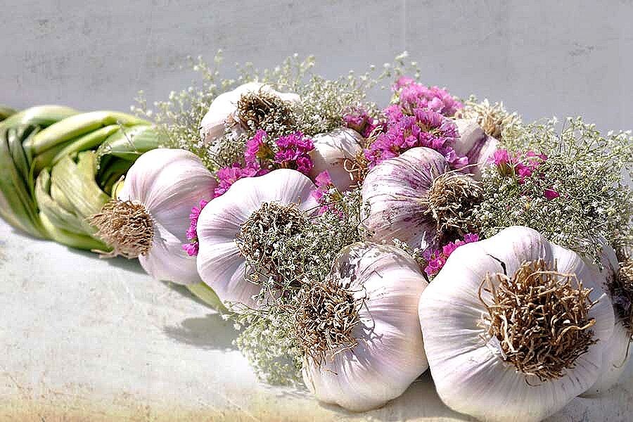 - Сушка: После покупки чеснок нужно высушить с корешками и стеблем в проветриваемом месте на 1-2 недели.