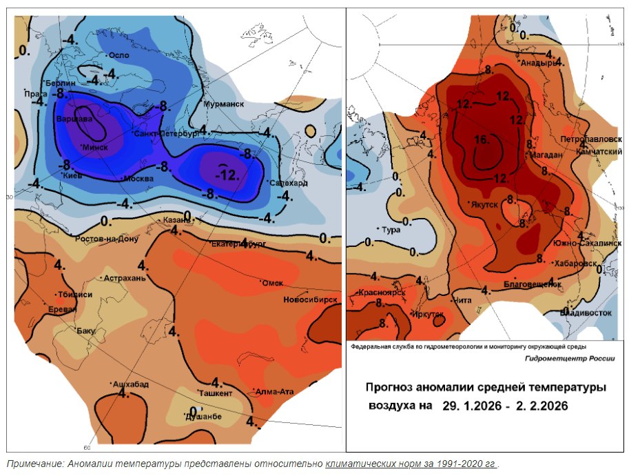 По данным синоптиков, среднесуточная температура в указанные дни окажется на 7–10 градусов ниже климатической нормы. Для конца января это означает, что термометры покажут -17…-24°C при норме -10…-14°C.