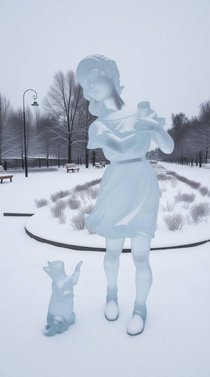 А мы с помощью нейросети представили, как бы выглядели вологодские скульптуры, если бы они были изо льда.