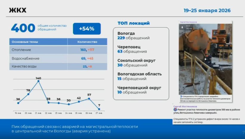 Георгий Филимонов попросил не путать аварии и инциденты. Отключения и аварии на сетях водо- и теплоснабжения на Вологодчине снизились. С прошлого года наш регион поднялся с 74-го места по аварийности ЖХК на 7-е место.