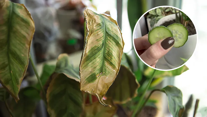Чтобы проверить, есть ли среди корней вредители, можно использовать интересный метод с огурцом. Положите окрашенные ломтики свежего огурца в горшок на сутки и посмотрите на их поверхность через 24 часа: если на них появились вмятины, это однозначно указывает на наличие вредителей.