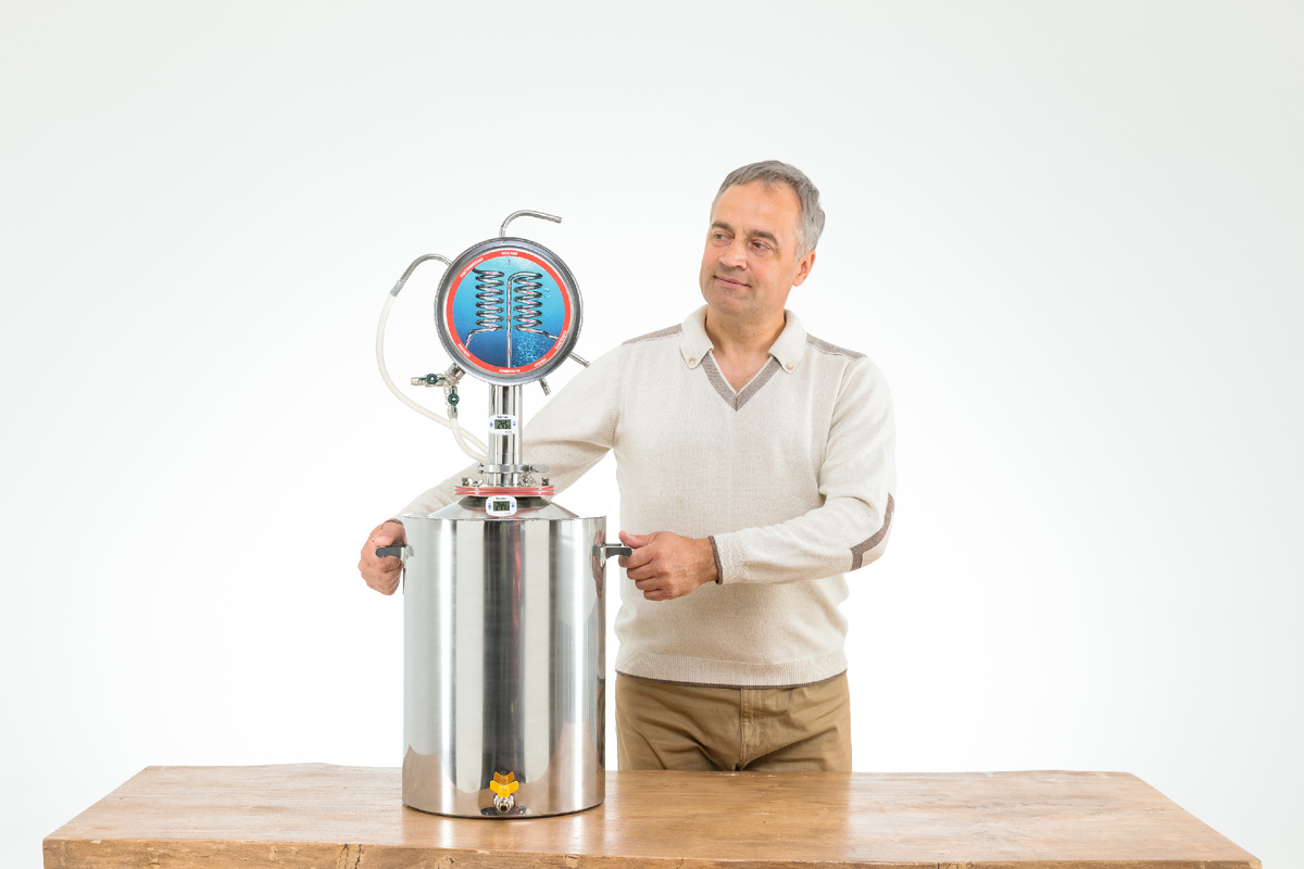 Под капотом устройства работает продвинутая система с двумя баками и двойным контуром охлаждения. Сначала брага попадает в основной бак, где происходит первичная дистилляция. Затем спирт-сырец перемещается во второй бак, где проходит вторичную очистку, обеспечивая выход продукта крепостью до 90 градусов.