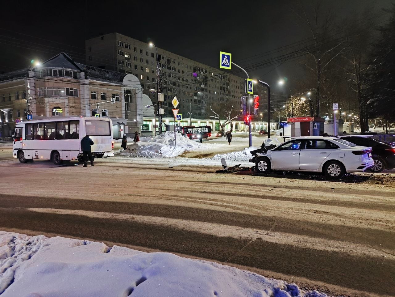 Сегодня в 5:55 на ул. Ленинградской, 132 в Вологде столкнулись легковушка и автобус.