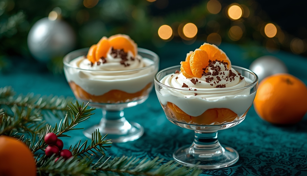 Этот простой и изысканный десерт, состоящий из мандаринов и белого шоколада, станет настоящей находкой для праздничного стола. Его невероятно нежная текстура обеспечивает легкость, а сочетание фруктов и шоколада доставляет истинное удовольствие. Лучшее в этом десерте — он готовится очень быстро и легко, что позволяет наслаждаться сладким удовольствием без лишних хлопот.